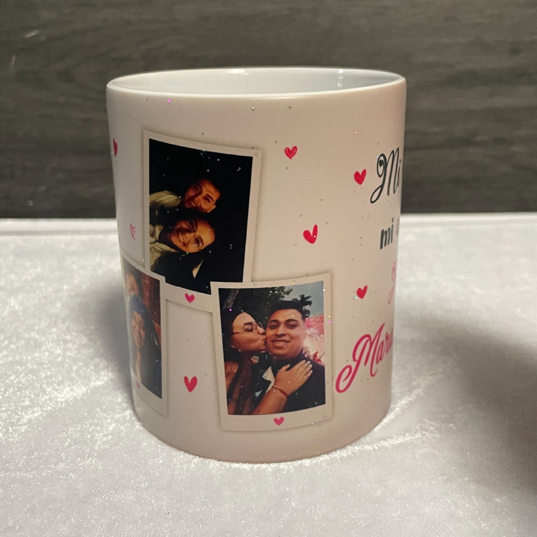 Tu diseño aparece poco a poco, revelando la imagen o mensaje que elijas mientras el acabado glitter le da un toque único, llamativo y especial. Es perfecto para regalos, fechas especiales o para disfrutar tu bebida favorita con un efecto sorprendente.