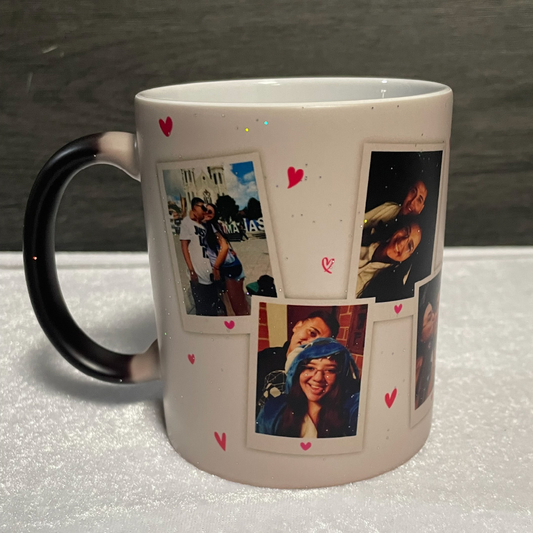 Sorprende con un detalle original, brillante y lleno de magia. Nuestro mug mágico glitter personalizado parece una taza oscura con efecto brillante, pero al servir una bebida caliente… ¡la magia ocurre!