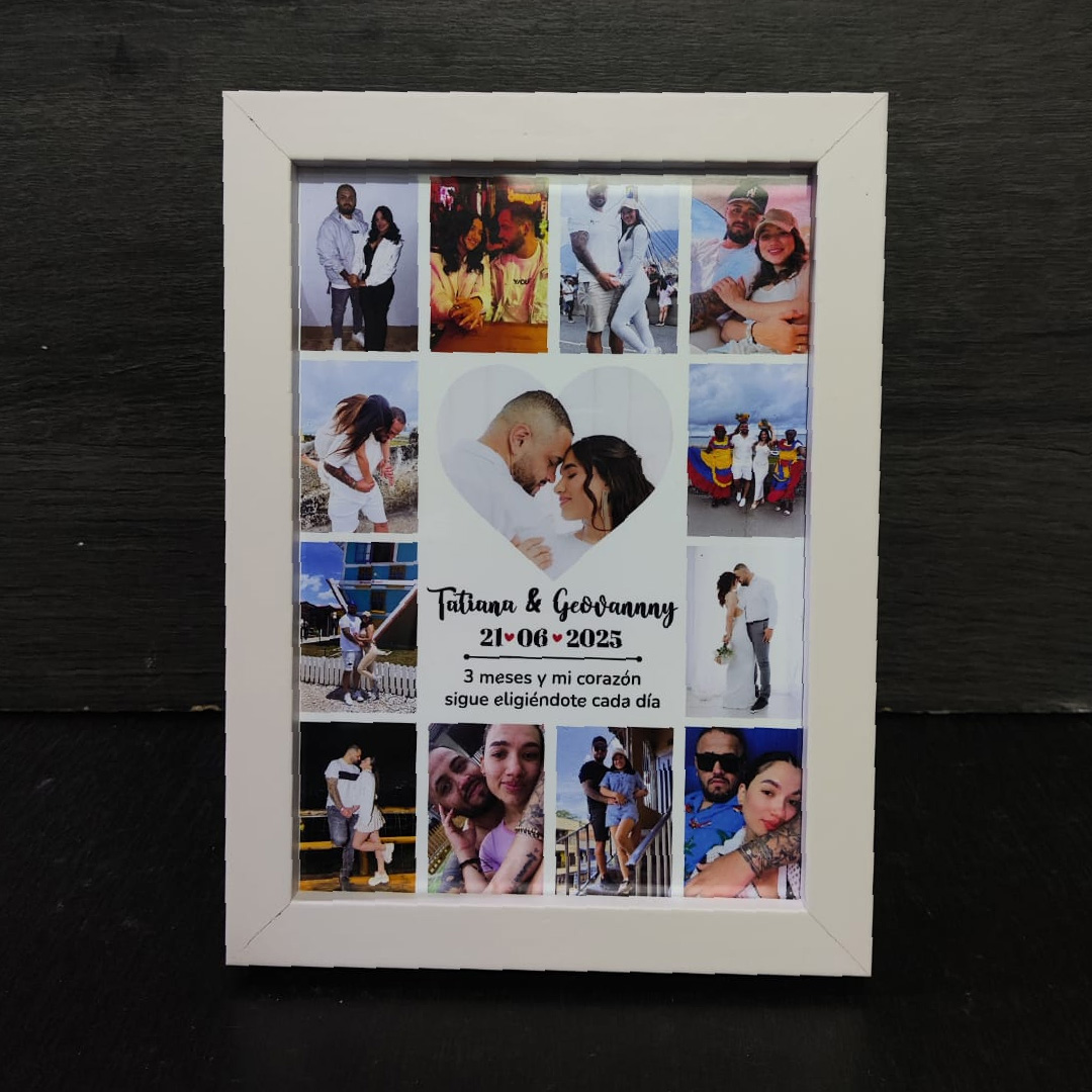 Incluye una foto tamaño 13 × 18 cm (similar a media carta), personalizada con tus imágenes y diseño favorito. Su tamaño compacto lo hace perfecto para cualquier espacio, mientras que su acabado elegante resalta cada detalle de tu fotografía.