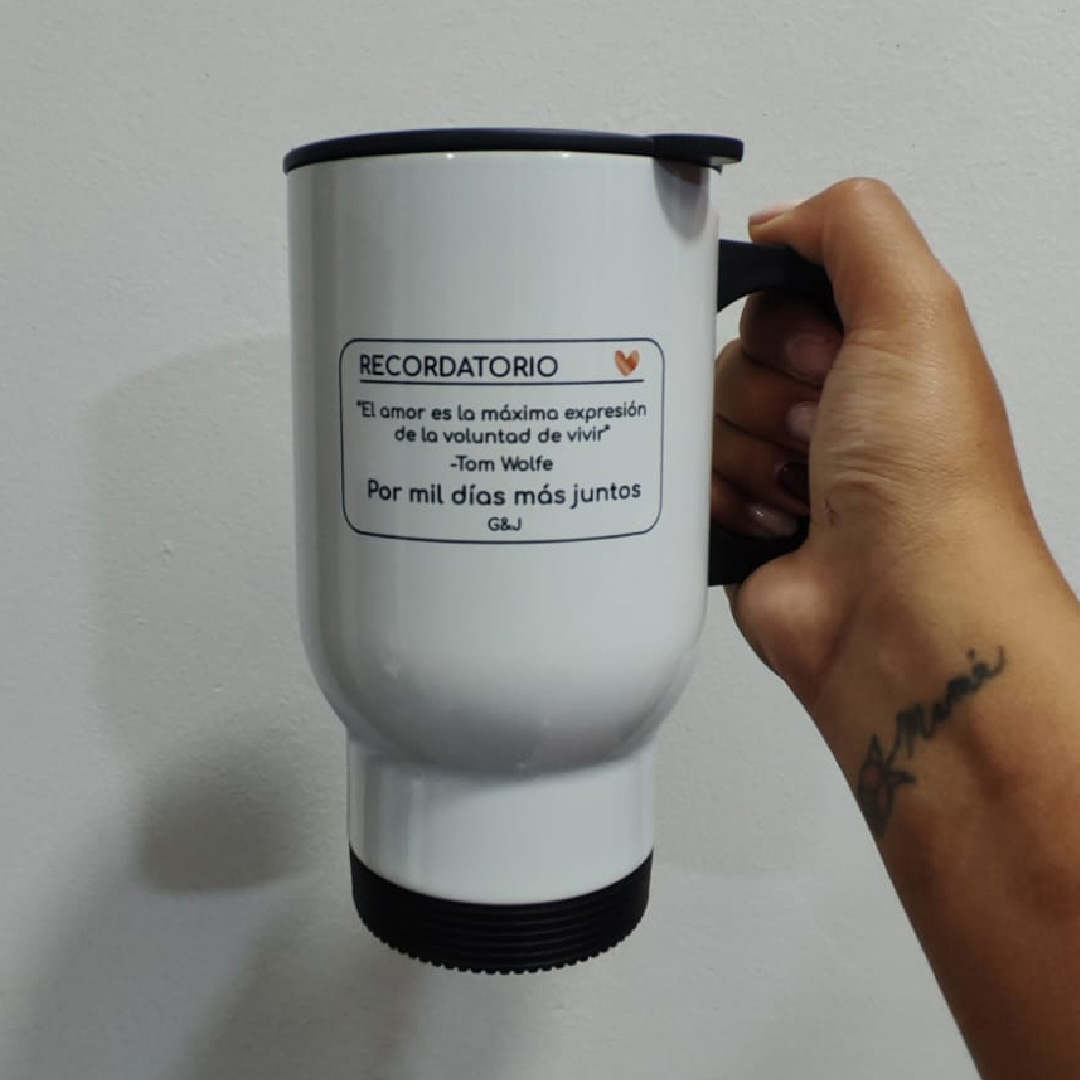 Es perfecto para café, bebidas frías o calientes, y también funciona como un excelente regalo personalizado para quienes pasan tiempo en la carretera.